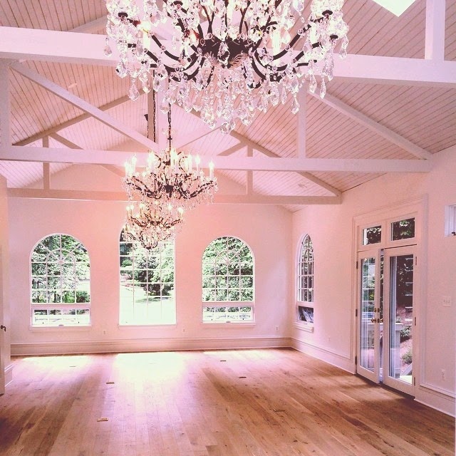 Photo: early morning after hanging the chandelier crystals