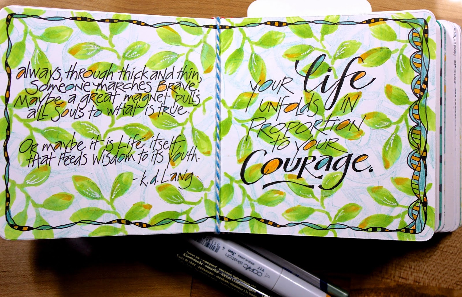 I used a waterproof black pen to letter and the same Copics to fill in the doodled border.